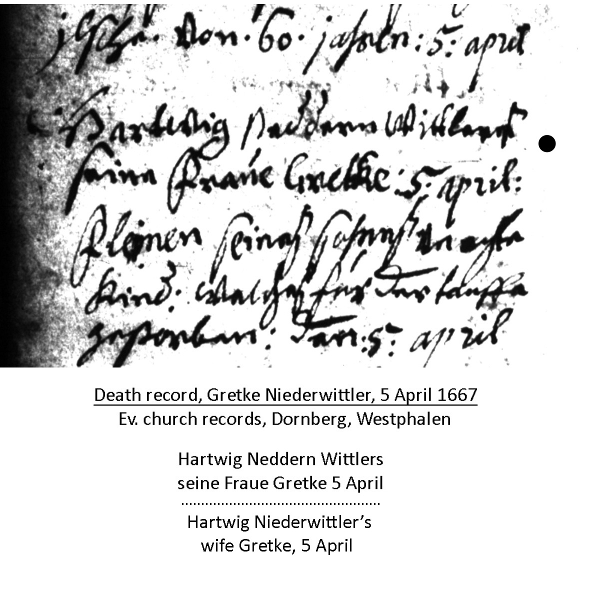 Death record, Trinke Niederwittler, 8 Sep 1675